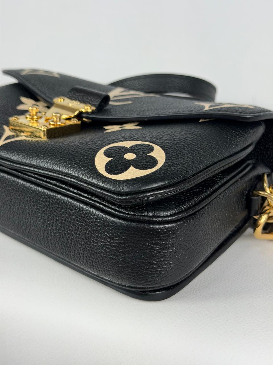 Confeccionada no couro Monogram Empreinte com alto-relevo, a edição bicolor East-West da bolsa Pochette Métis apresenta uma versão oversized do símbolo da Maison. Sofisticada e moderna, esta bolsa versátil para o dia todo pode ser usada no ombro com a corrente dourada removível, na transversal com a elegante alça ajustável ou carregada na mão graças à alça superior.