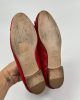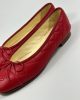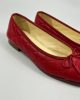Sapatilhas Chanel. Elas são perfeitas para usar em dias corridos e têm estilo suficiente para combinar com o estilo. Confeccionadas em couro vermelho, elas apresentam o clássico quilt, o logotipo da CC na ponta e detalhes em laço.